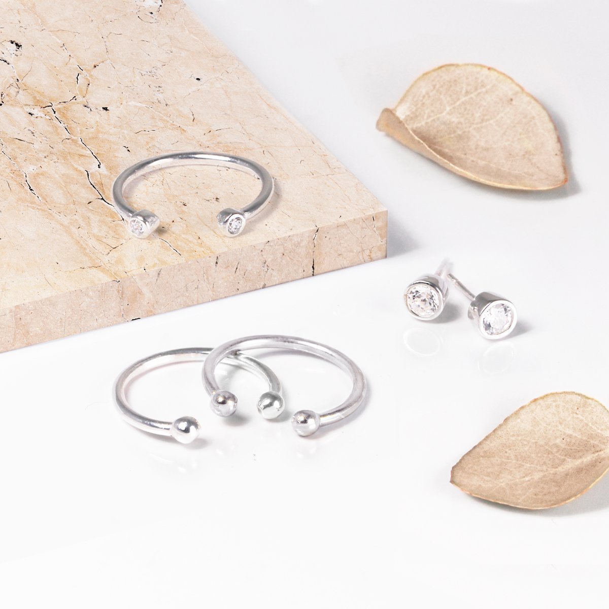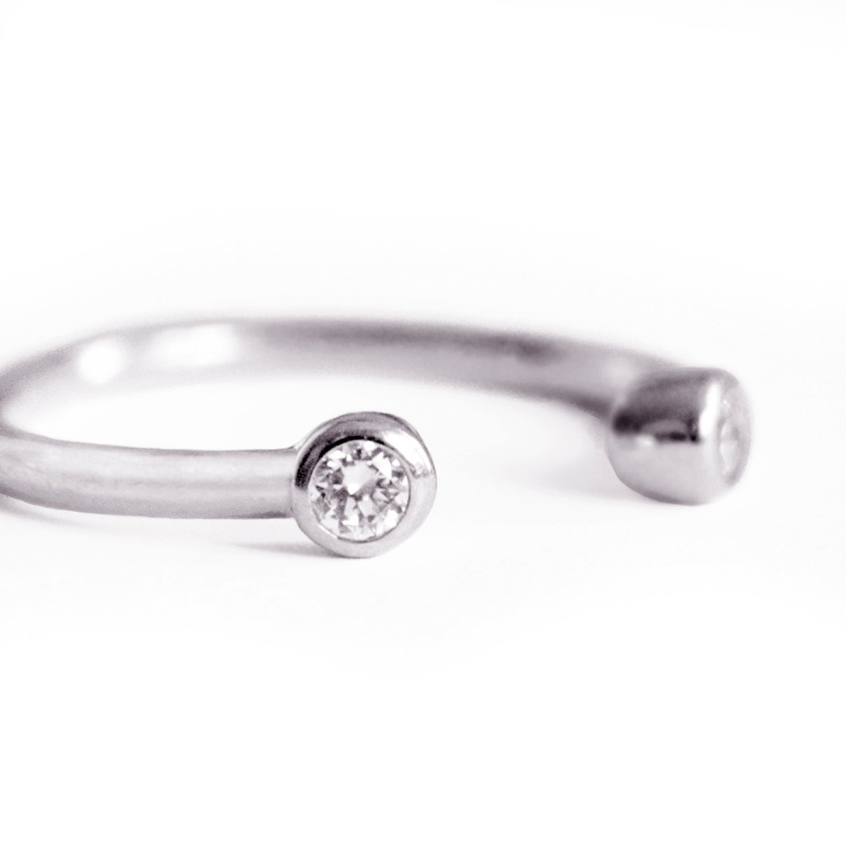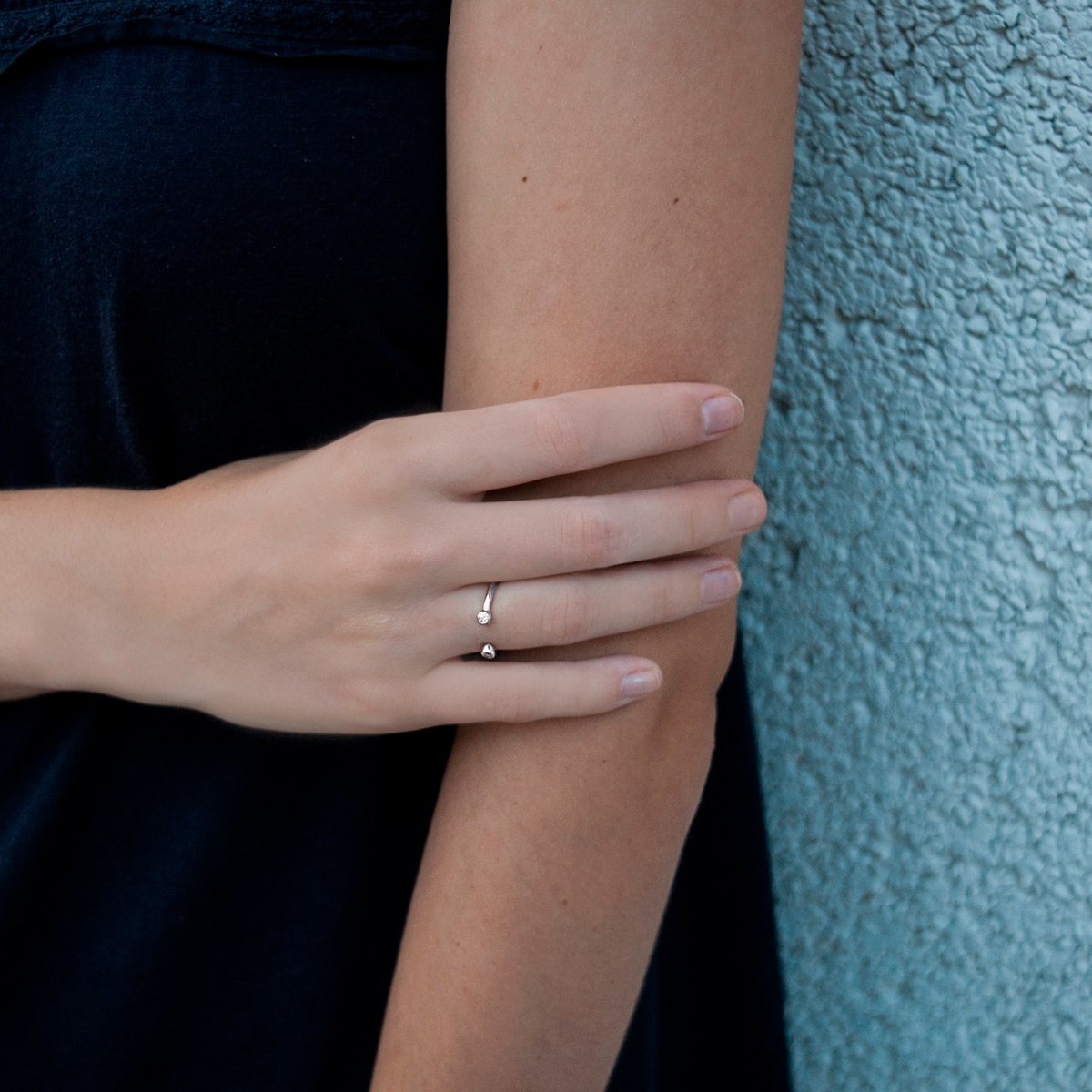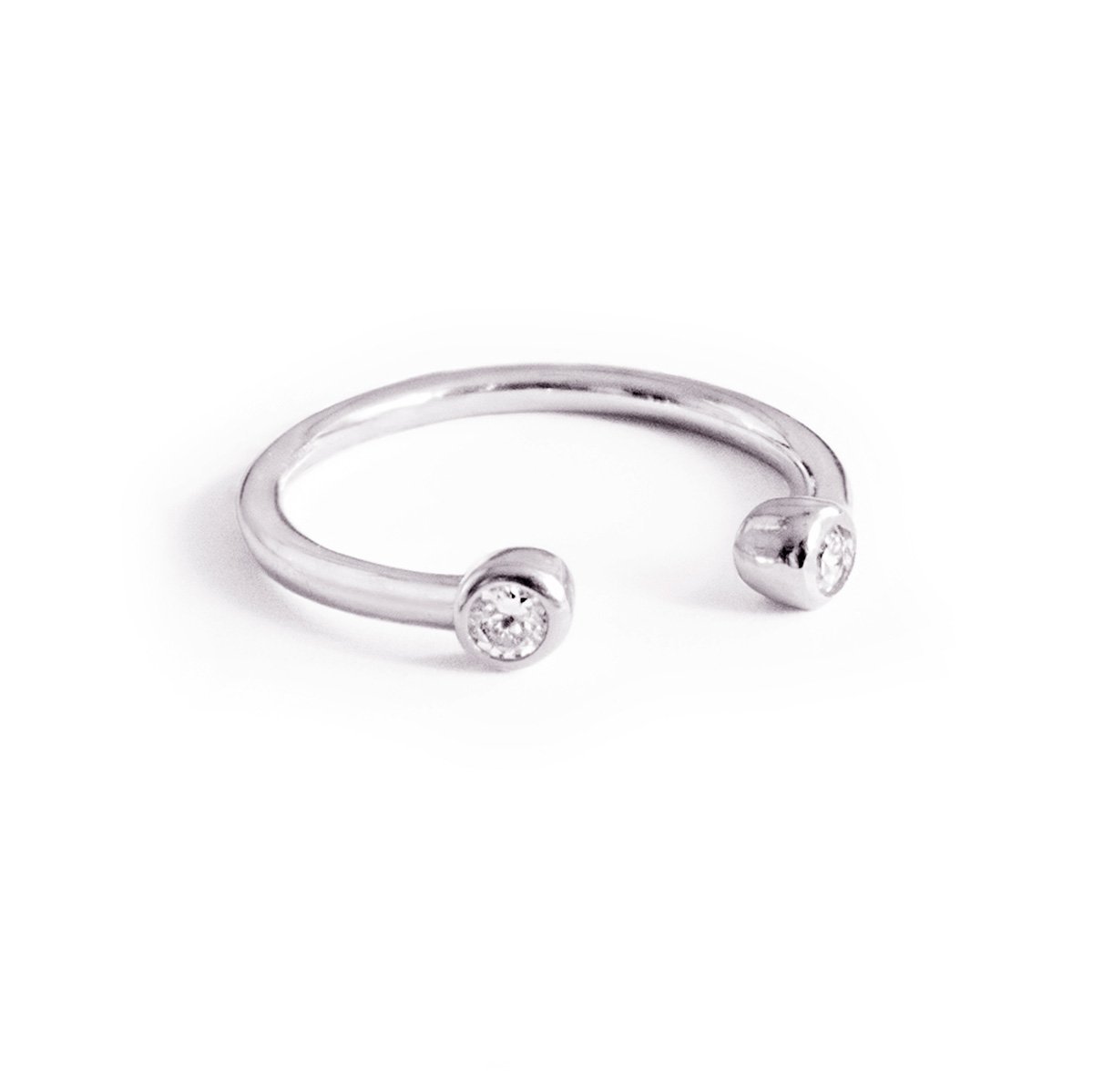 Envío 48/72 horasSencillo, elegante y perfecto para combinar con otros anillos. Así es el Anillo Diamonds Plata, una Joya formada por dos circonitas blancas en los extremos que abrazan tu dedo dándole un efecto súper estiloso. Al ser un Anillo abierto la talla es única y ajustable a cualquier dedo con la talla entre la 10-16.