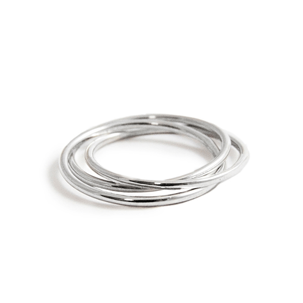 Una joya formada por tres anillos de Plata de Ley de 1,2mm enlazados entre sí. Un anillo de gran belleza y sencillez. Una pieza que atrae las buenas vibraciones.