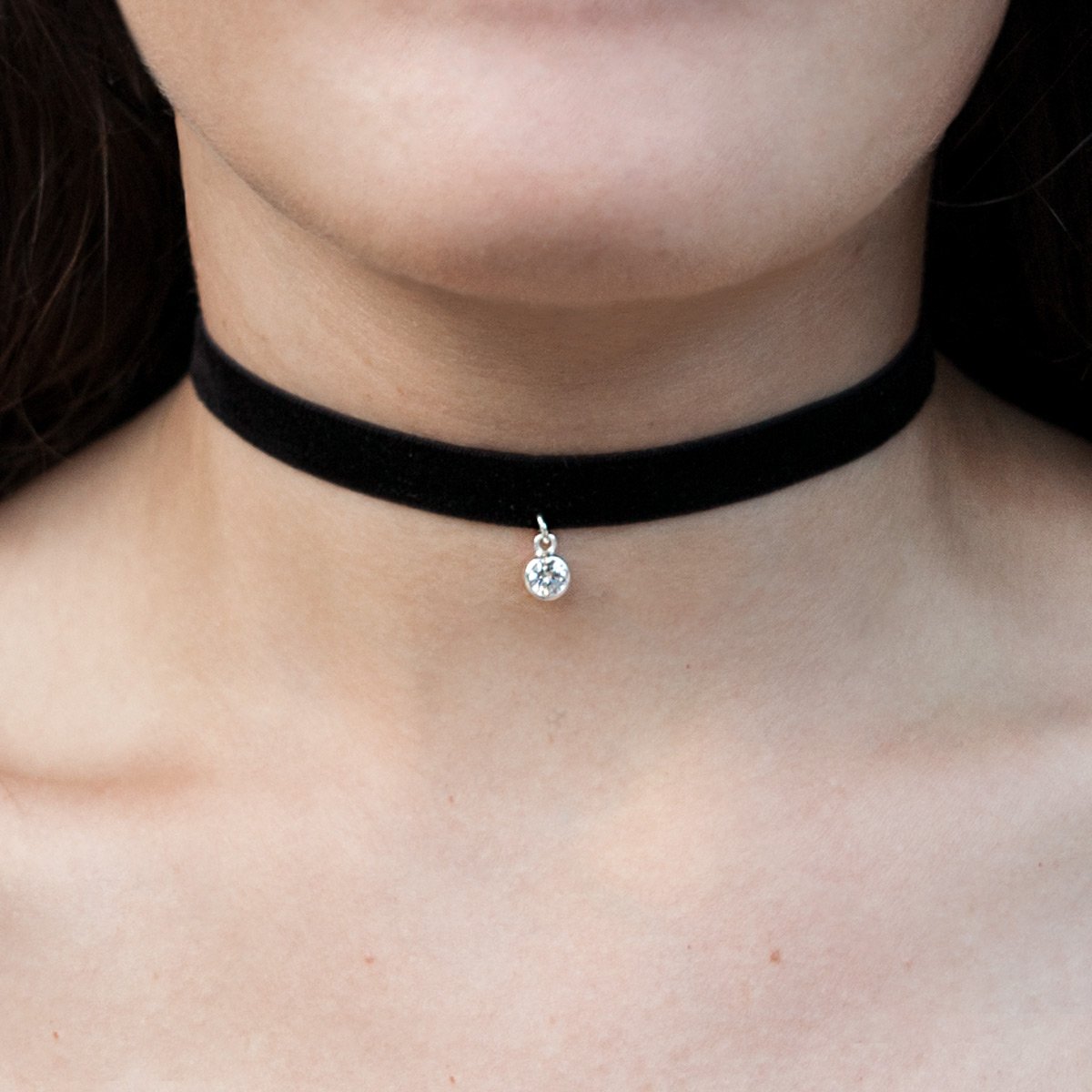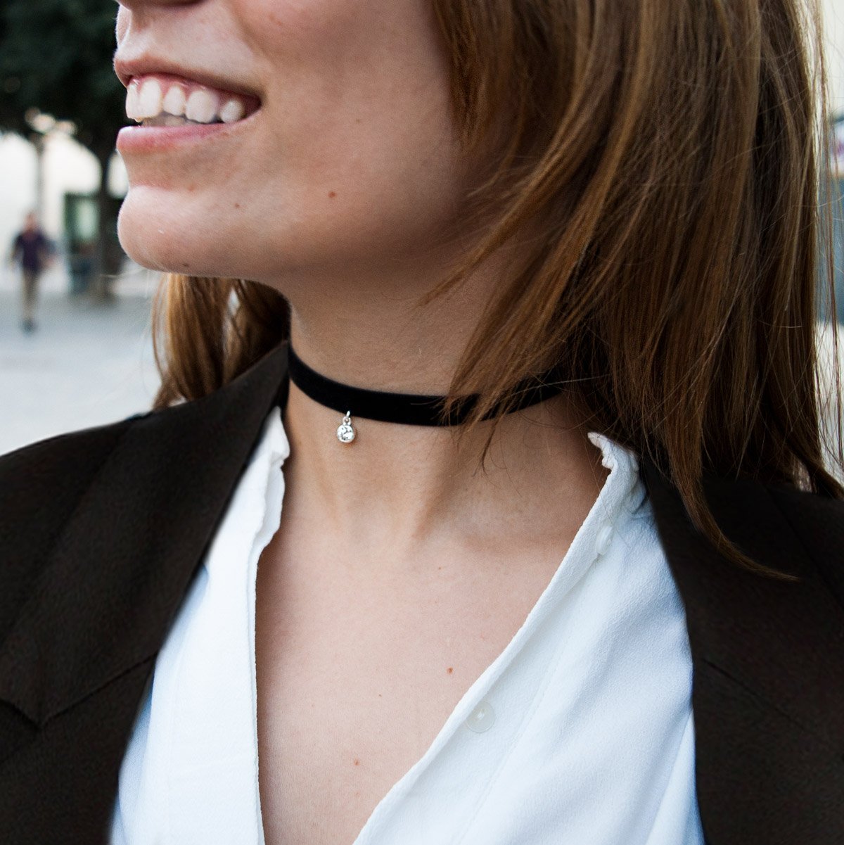 Envío 48/72 horasLos Chokers arrasaron en los 90 y vuelven con la misma fuerza que en aquellos años para dar tu cuello un toque elegante y sexy a la vez. El Collar Choker Diamond Plata es una Joya formada por una cinta de terciopelo negro y una preciosa circonita blanca que quedará en el centro de tu cuello.