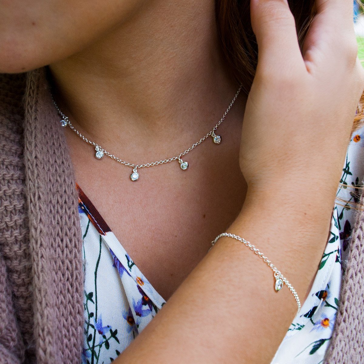 El Collar que te hará brillar esta temporada se llama Trinity y hará que tu cuello luzca irresistible. El Collar Trinity está compuesto de 5 preciosas circonitas blancas engarzadas a una elegante cadena de Plata de Ley. Si quieres conseguir un total look, puedes combinarlo con la Pulsera Trinity.