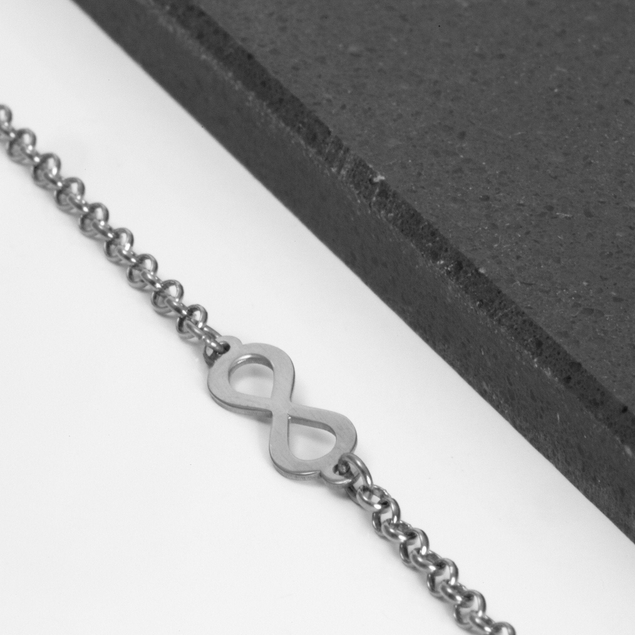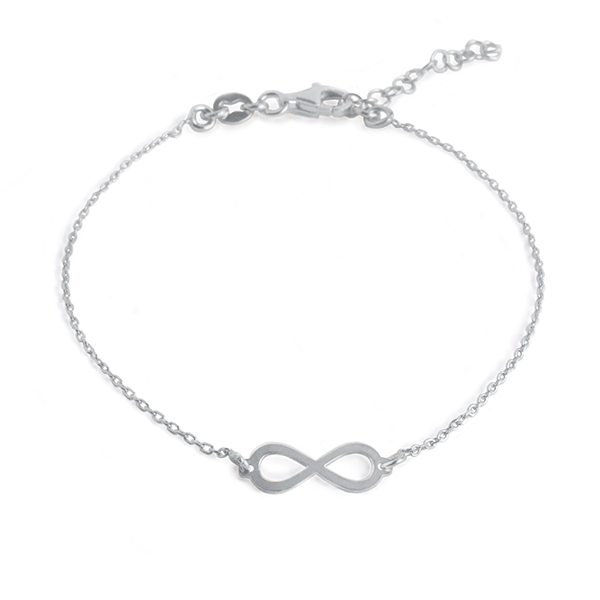 La pulsera que refleja el infinito en tu muñeca, aquello que nunca termina y que durará para siempre en Plata de Ley. Cadena de 18cm más 3,5cm de alargador.
